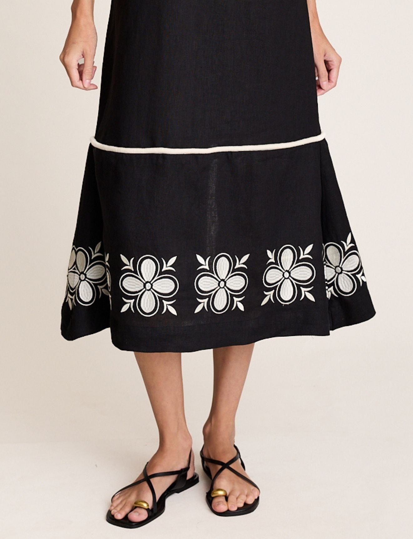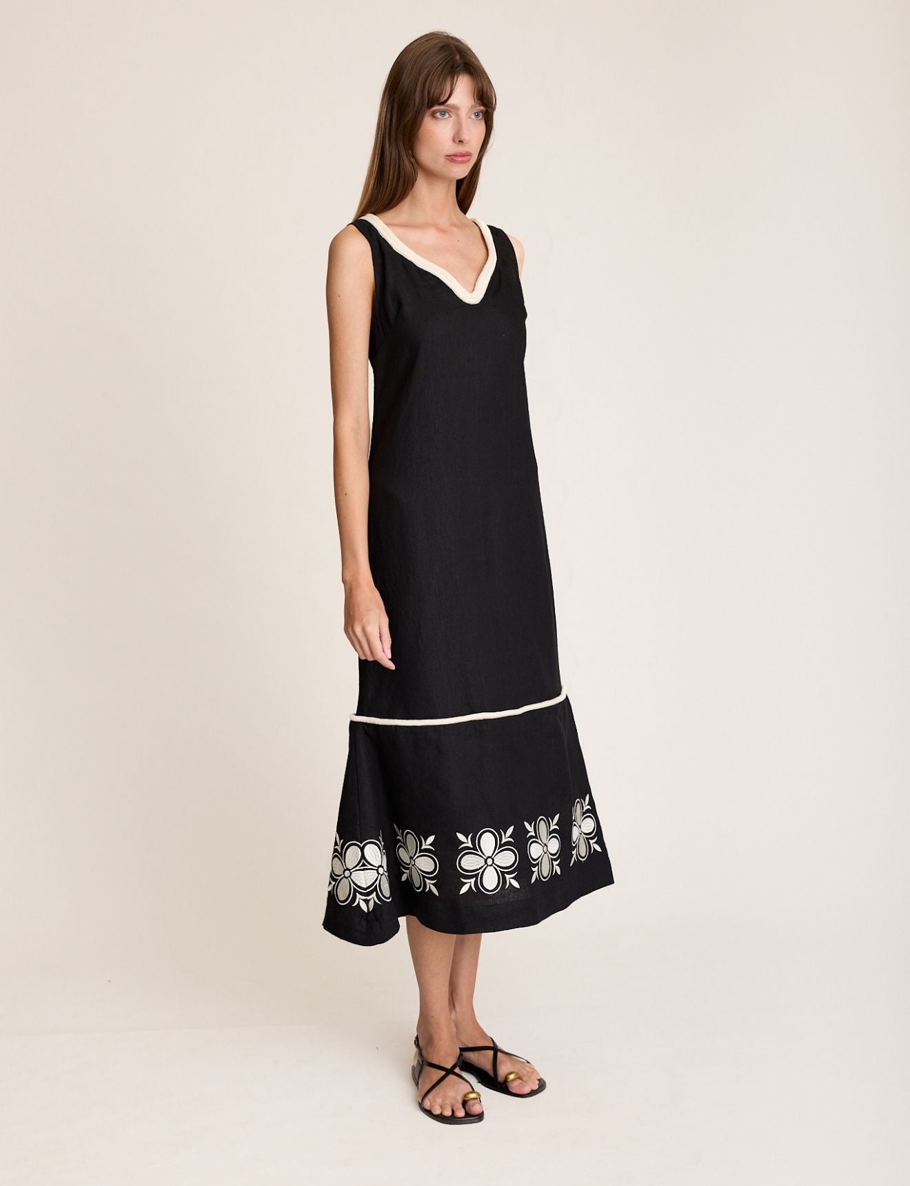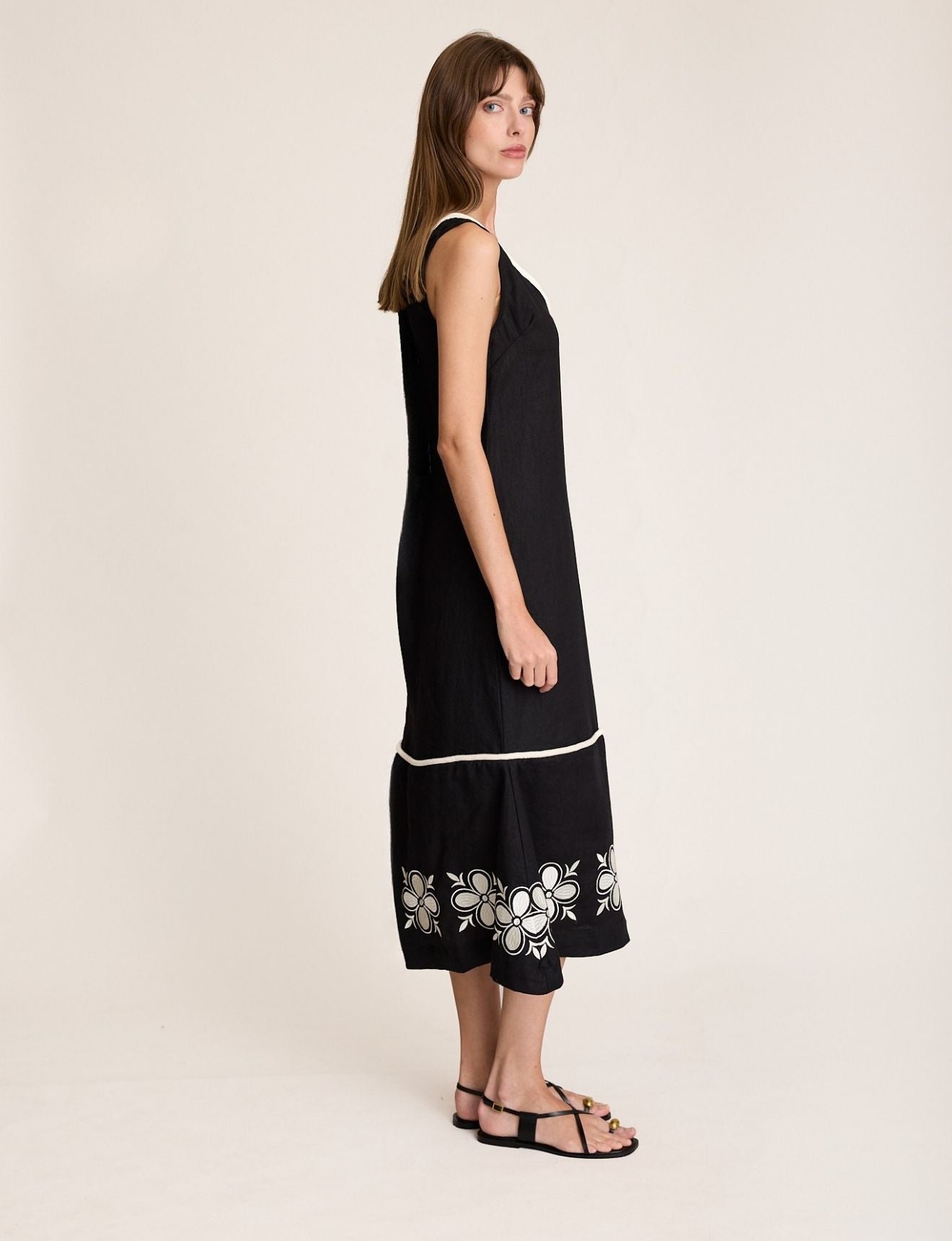 EMBROIDERED HEM DRESS in luxury French flax linen captures the essence of sophisticated summer style.