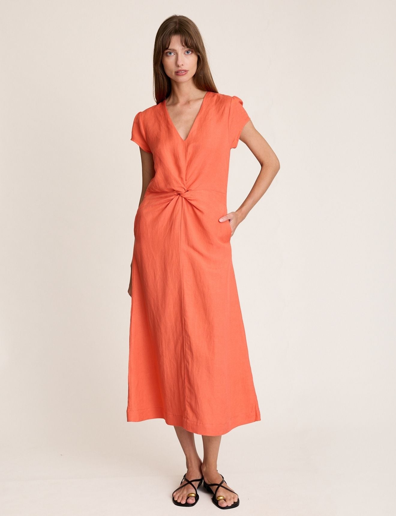 KNOT DRESS is an ultra stylish piece, crafted from our signature French flax linen. Featuring a knotted twist waist detail designed to flatter any waistline. This elevated modern dress will take you from theΒ the boardroom to evening cocktails with style & confidence.
